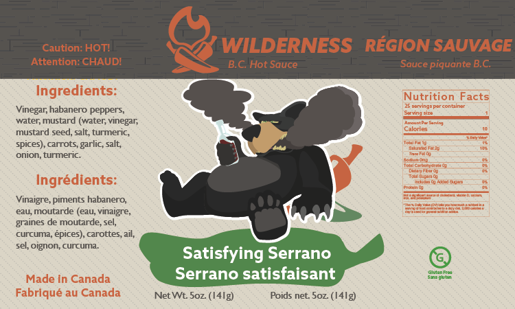 A conceptual hot sauce brand based in B.C. designed for bringing that “campfire warmth” to residents and true friends of the beautiful west coast. Featuring three simple, distinct flavours of spice, the warm orange of a campfire and funny cartoon caricatures of local wildlife work to have a brand of hot sauce the target market will open up to.